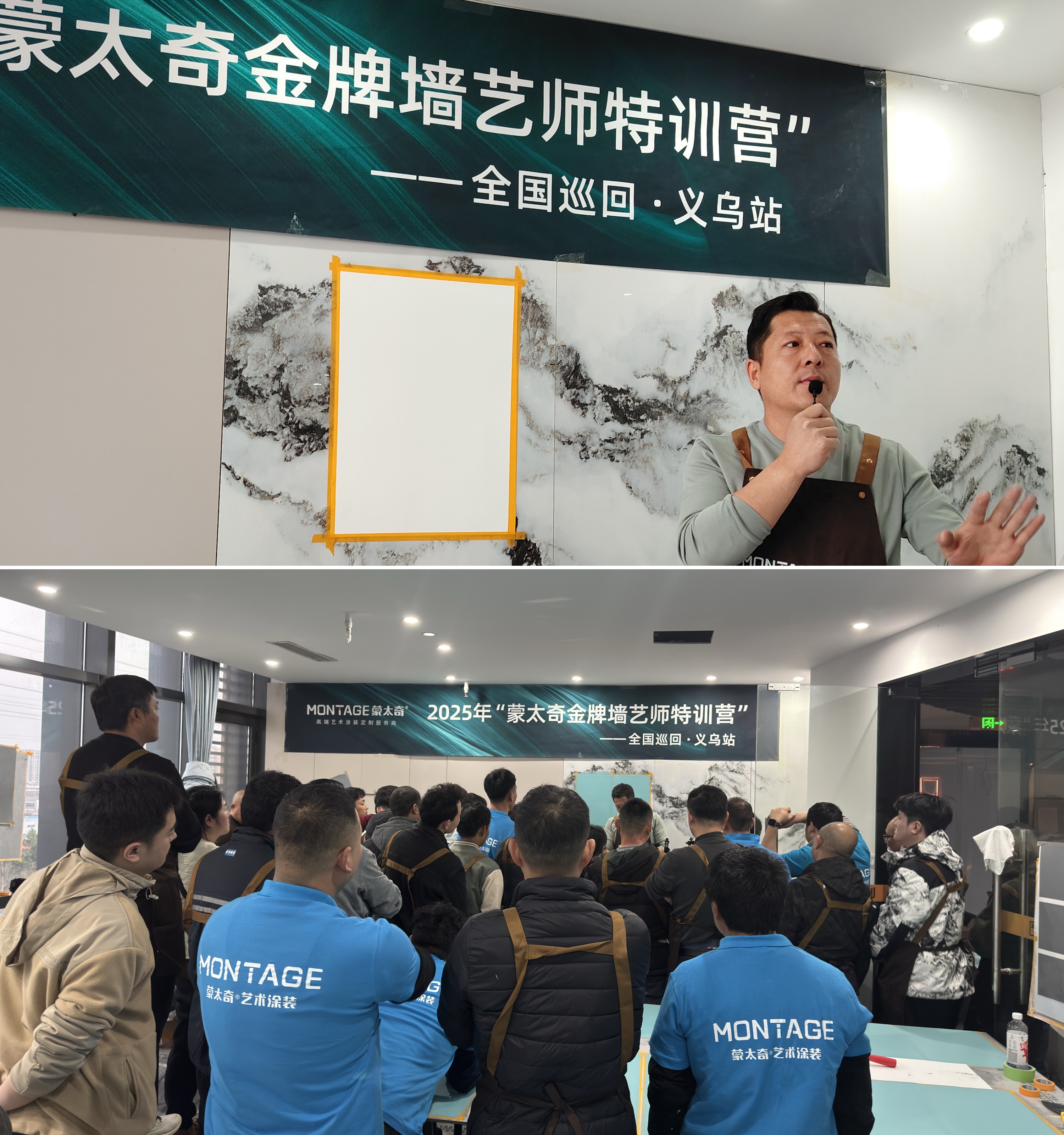 5月底至6月初,呂芳方女士攜蒙太奇2025年度戰略新品「魔方石」來到華南戰區。在廣東番禺和江西南昌兩地,分別啟動618華南聯動同城流量特訓營。她親自揭曉這款「免膩子工藝+ 72 面百變效果」的革命性產品,并同步推出「新品突圍 + 流量破局」雙主線戰術。
