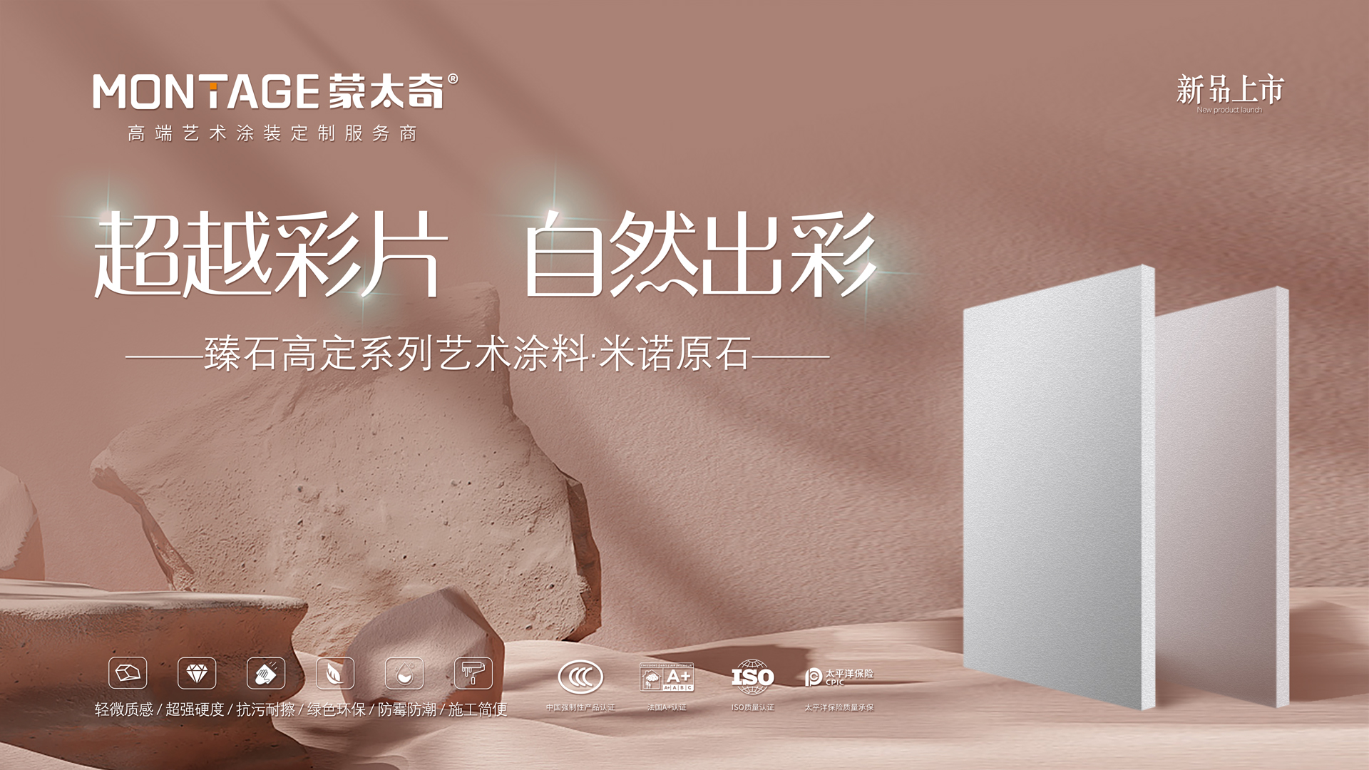 蒙太奇新品臻石·米諾原石融入原石天然之美,超越彩片,自然出彩。其藝術肌理表現力強,仿佛每面墻都是歷經精雕細琢的天然石材。同時,它還擁有超高硬度,無論外界環境如何變化,都能保持如初的美麗與堅韌。擁有媲美雅晶石的超強硬度,施工卻更簡單,可替代市面上雅晶石,液體彩片,晶鉆彩。
